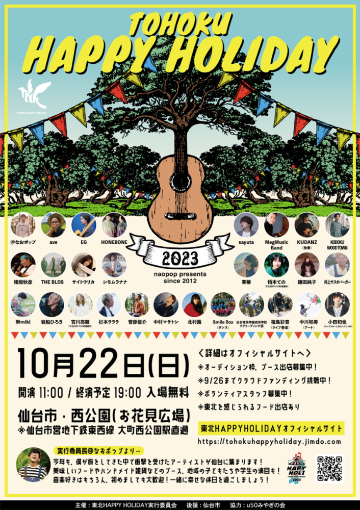 2023.10.22(日)仙台市・西公園(お花見広場) SCHEDULE 2023/10/22(日) 16:50 - 仙台市・西公園(お花見広場) 16:50〜17:20出演予定 入場無料 URLをコピーする 報告する