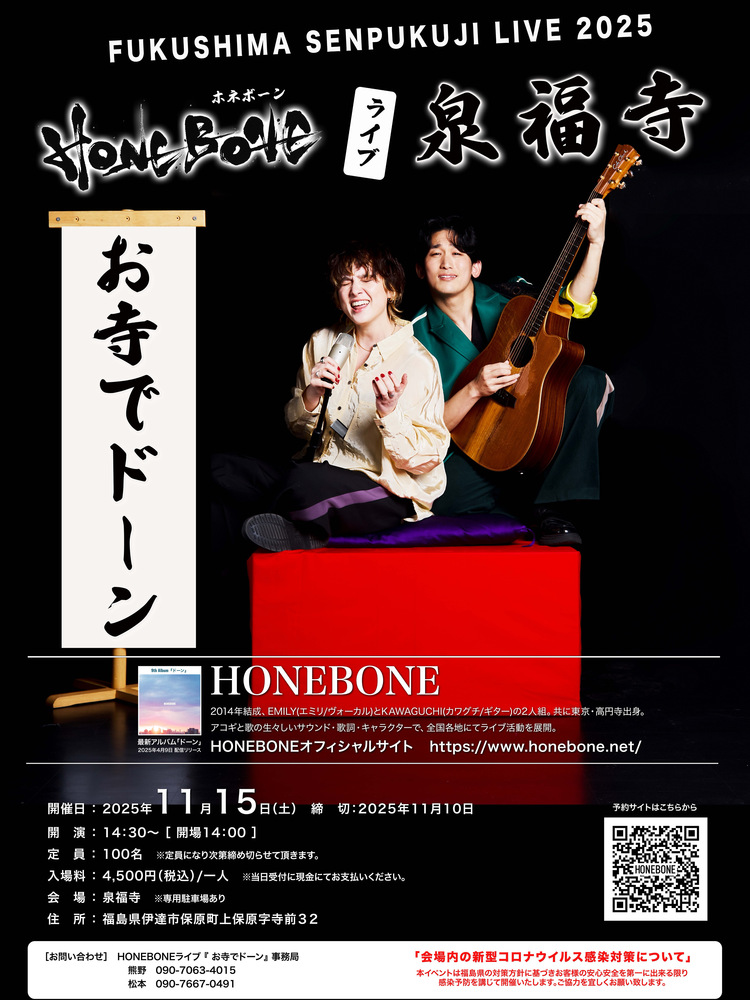 11.15(土)福島泉福寺ライブ&BONESオフ会 SCHEDULE 2025/11/15(土) 福島泉福寺 地図を表示 開場14:00 / 開演14:30 ¥4,500 『お寺でドーン』 ワンマンライブ🎤 BONES限定オフ会🙌▶︎16:45〜参加費🎫¥500当日受付にて現金でお支払いとなります🙇 URLをコピーする 報告する